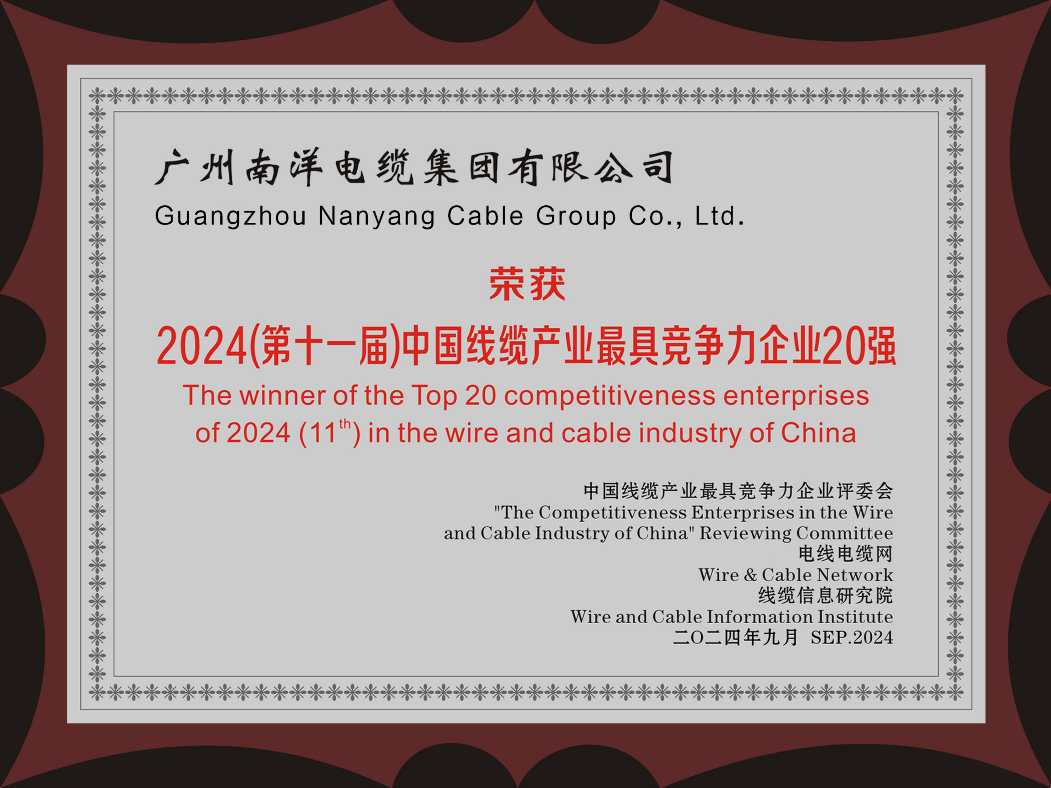 廣東線纜行業(yè)最具競爭力企業(yè)第一名、中國線纜行業(yè)最具競爭力企業(yè)20強、華南地區(qū)電線電纜研發(fā)制造龍頭企業(yè)